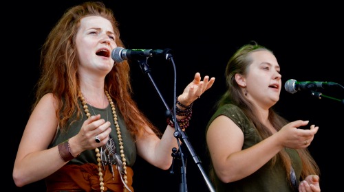 Genau wie bei Kanguka bringt auch das polnische Laboratorium Piensni traditionelle Lieder aus seinem Land mit nach Dortmund. Der Chor singt vom Magischen des Alltags, vom Leben und vom Tod, von Einsamkeit und Glück – und das alles in polnischen und russischen Dialekten. Sanft fließen die verteilten Stimmen dahin, wie der Fluss, von dem sie singen. Ebenso ruhig bewegen sich ihre Arme im Takt. Langgezogene Vokale lassen ihren Gesang fast wie aus einer anderen, einer mythischen Welt erscheinen. Immer wieder mischen sich Trommelschläge, das Klimpern von kleinen Glöckchen oder das sonore Wimmern eines Zuginstruments unter den sphärischen A-capella- Gesang.