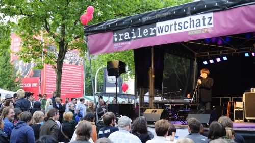 Neben den drei Musikbühnen ziert zum dritten Mal die trailer-Wortschatzbühne die Passage entlang der Viktoriastraße zwischen der WAZ-Bühne und der Marienkirche. Hier ist es etwas leiser, mit weniger Lichteffekten, dafür aber reichlich Ausdrucksstärke. Wenn die Musik auf den großen Bühnen verstummt, fallen hier die ersten Silben der Wortkünstler.