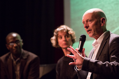 Mit der Frage der Rohstoffe, rückte ein Problem in den Mittelpunkt, das Ames schon angedeutet hatte: die Wechselwirkungen einer globalisierten Wirtschaft. Unsere Technik vom Auto bis zum Smartphone basiert nicht zuletzt auf Seltenen Erden wie Kobalt oder Coltan. Wie steht es hier um die Menschenrechte, genauer um die Abbaubedingungen? Immerhin von „punktuellen Verbesserungen“, wusste Ames zu berichten. Das bedeute, das es inmitten von Konfliktgebieten einzelne Minen beispielsweise im Osten der DR Kongo gibt, in denen unter konfliktfreien Bedingungen gearbeitet wird.