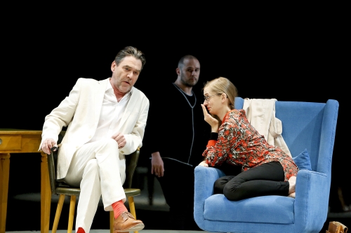 Thomas Ladwig inszeniert das Stück geschickt auf einem drehbaren Kreis, auf dem sich weitere Requisiten drehen und sich so die Konstellationen und Zeiten immer neu konstruieren lassen. Es scheint den Charme des Boulevard zu atmen, doch dieses Gefühl hält nur Minuten: Kürmann weigert sich, den Tatbestand der Realität anzuerkennen und bekommt als Vision eine zweite Chance: Hätte er Antoinette damals konsequent aus der Wohnung komplimentiert, dann hätte er nicht geheiratet, wäre nicht krank geworden. Logik, Schach und Wittgenstein schweben durch den Raum, doch so einfach wird es nicht werden. Die drei Spielfiguren Silvia Weiskopf, Stefan Migge und Jens Winterstein wechseln auf der Bühne Kostüme, Zeiten und Dialoge, am Ende wird sich nichts geändert haben, nur die Bühne und die zwei durchsichtigen Garderoben rechts und links scheinen derangiert zu sein, das Schicksal lässt sich eben nicht betrügen.