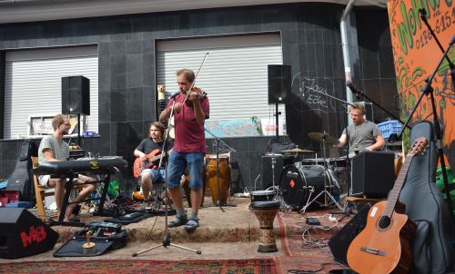 Auf einem ausrangierten Perserteppich haben die Freedes, eine Band aus der Nachbarschaft, ihr Set aufgebaut. Sie würzen ihren Jazz mit entspannten Geigenklängen. Am anderen Ende der Straße beschallt ein DJ einige Sitzgruppen, Holzbänke und Plüschsofas mit Lounge-Musik. So sorgen alle Bewohner und Freunde der Alsenstraße für ein harmonisches Fest, das die Nachbarschaft nicht nur auf der Bierbank näher zusammenrücken lässt.