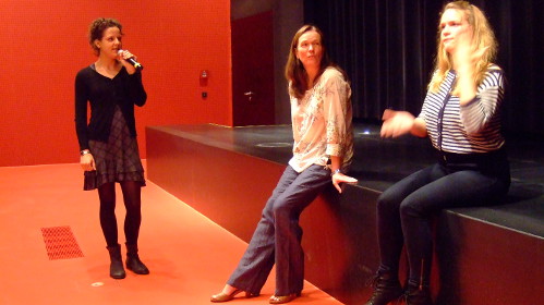 In einer Szene des Films sehen wir Louisa in einer Seminarsituation mit anderen StudentInnen und einem Dozenten, die sich engagiert in Gebärdensprache unterhalten. Die Szene ist nicht untertitelt (wie andere Szenen im Film), sodass man als hörender Zuschauer auf interessante Art auf dem Schlauch steht. Unmöglich zu verstehen, was da verhandelt wird. Genauso sehen wir etwas später viele sprechende Münder, allerdings hören wir nur einen Sound, das Gesprochene bleibt unhörbar. Auffällig war, dass nur Lautsprachlich kommunizierende Zuschauer im Filmgespräch Fragen an die Protagonistin stellten, obwohl viele Gehörlose in der Veranstaltung waren, die in Kooperation mit dem Zentrum für Gehörlosenkultur http://www.zfg-dortmund.de/organisiert wurde. Erst nach dem offiziellen Teil drängen sich im Foyer zahlreiche Zuschauer um Louisa und sprechen engagiert lautlos in Gebärdensprache miteinander.