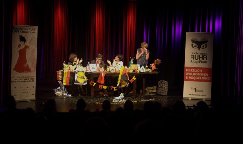 Die Lese- und Konzertreihe „Café Schlaflos“ neigt sich dem Ende. Am 26.10. war es daher nochmal Zeit für ein echtes Highlight. Ins Katakomben-Theater im Essener Stadtteil Rüttenscheid luden renommierte JournalistInnen zur „Hate Poetry“. Was beim Poetry Slam selbstgeschriebene Texte jeder Art sind, sind bei der „Hate Poetry“ erhaltene Leserbriefe. Die derbsten, unfreiwillig komischsten und skurrilsten wurden an jenem Abend in vier Kategorien von ihren jeweiligen EmpfängerInnen vorgetragen. Die AdressatInnen: Mely Kiyak und Özlem Topcu, beide u.a. tätig für die ZEIT und Hasnain Kazim, Istanbul-Korrespondent für Spiegel Online und Ersatzmann für taz-Journalist Deniz Yücel. Durch den Abend führte die taz-Journalistin Doris Akrap.