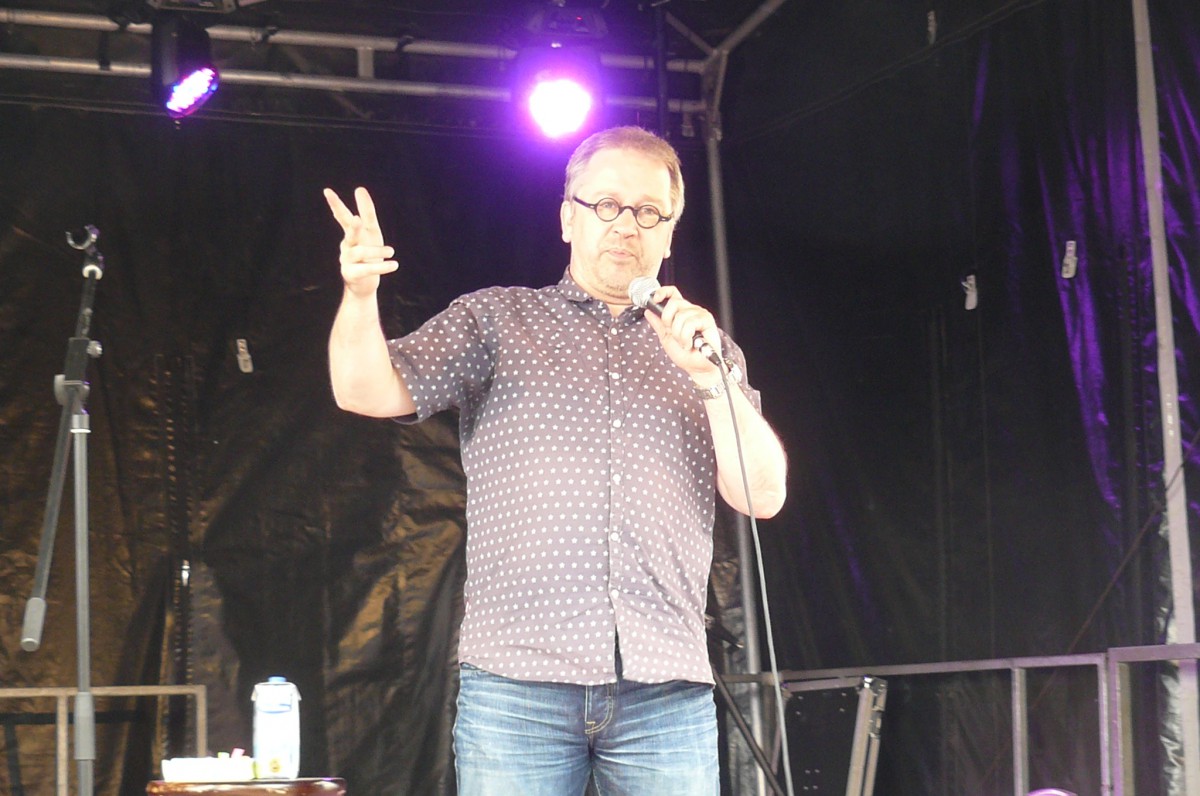 Nachdem sich am Vortag auf der trailer-wortschatzbühne noch die Wissenschaftler über mehrere Stunden verbal gebattlelt hatten, wurde es am Samstag zunehmend politisch. Kabarettisten, Liedermacher und andere Standup-Entertainer gaben sich die Ehre und brachten das Publikum zum Lachen, Nachdenken und stifteten es fast noch zur Revolte gegen die herrschenden Verhältnisse an. Dass dies nicht geschah, lag wahrscheinlich nur daran, dass man nicht den jeweils nächsten Gig verpassen wollte und am Ende so viel Wortwitz und Message erst einmal verdaut werden wollten.