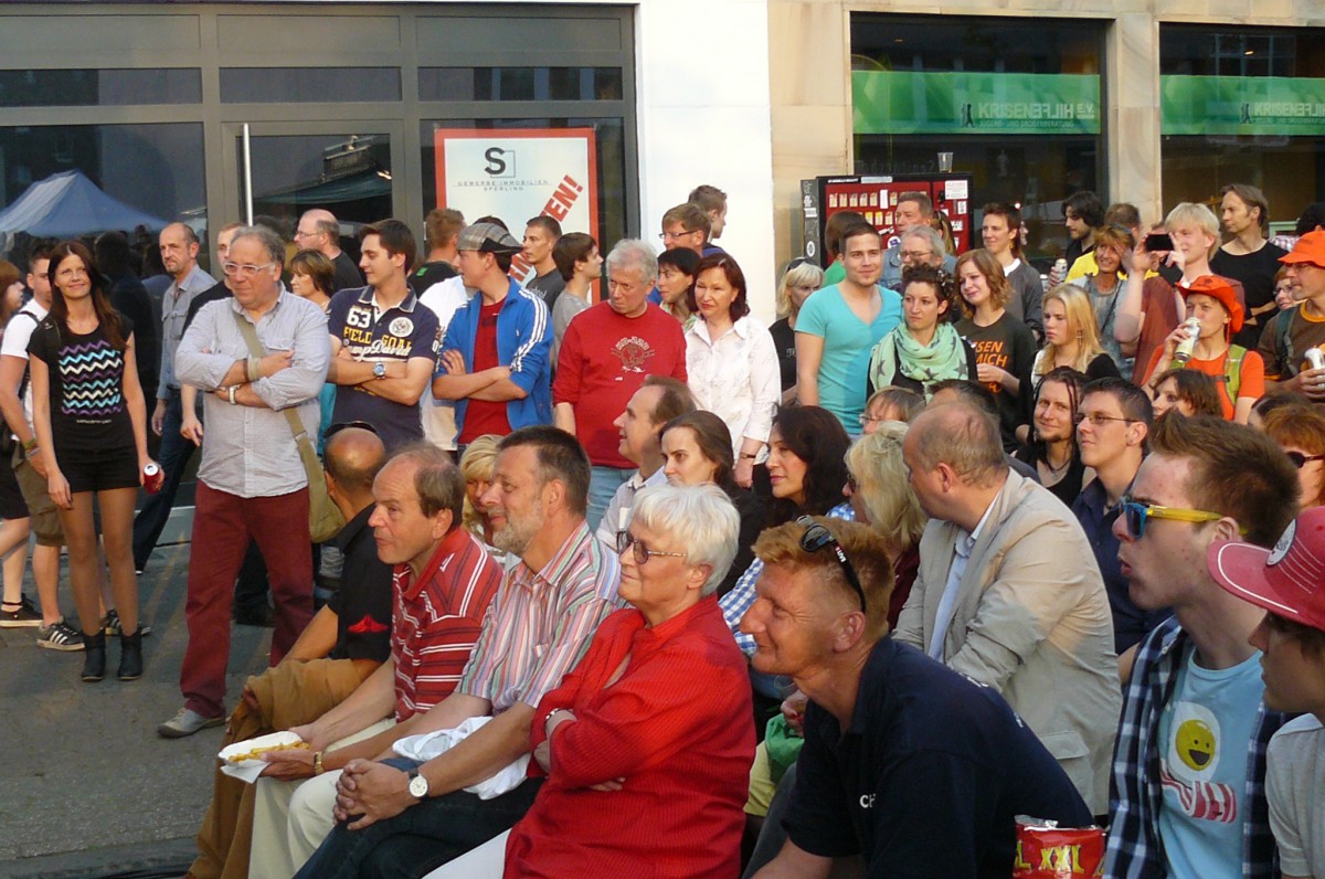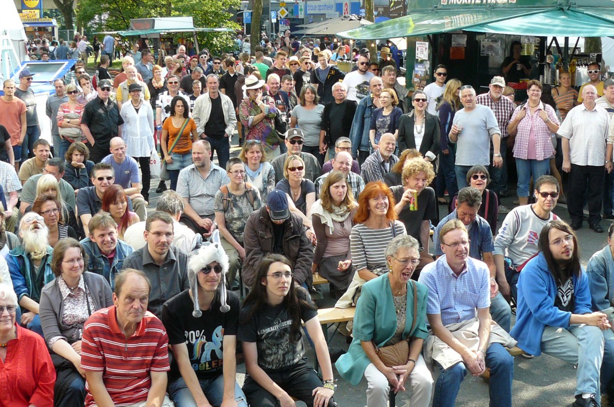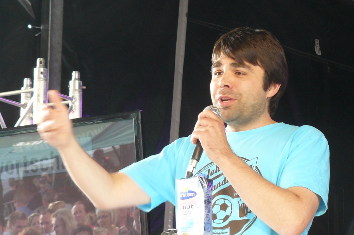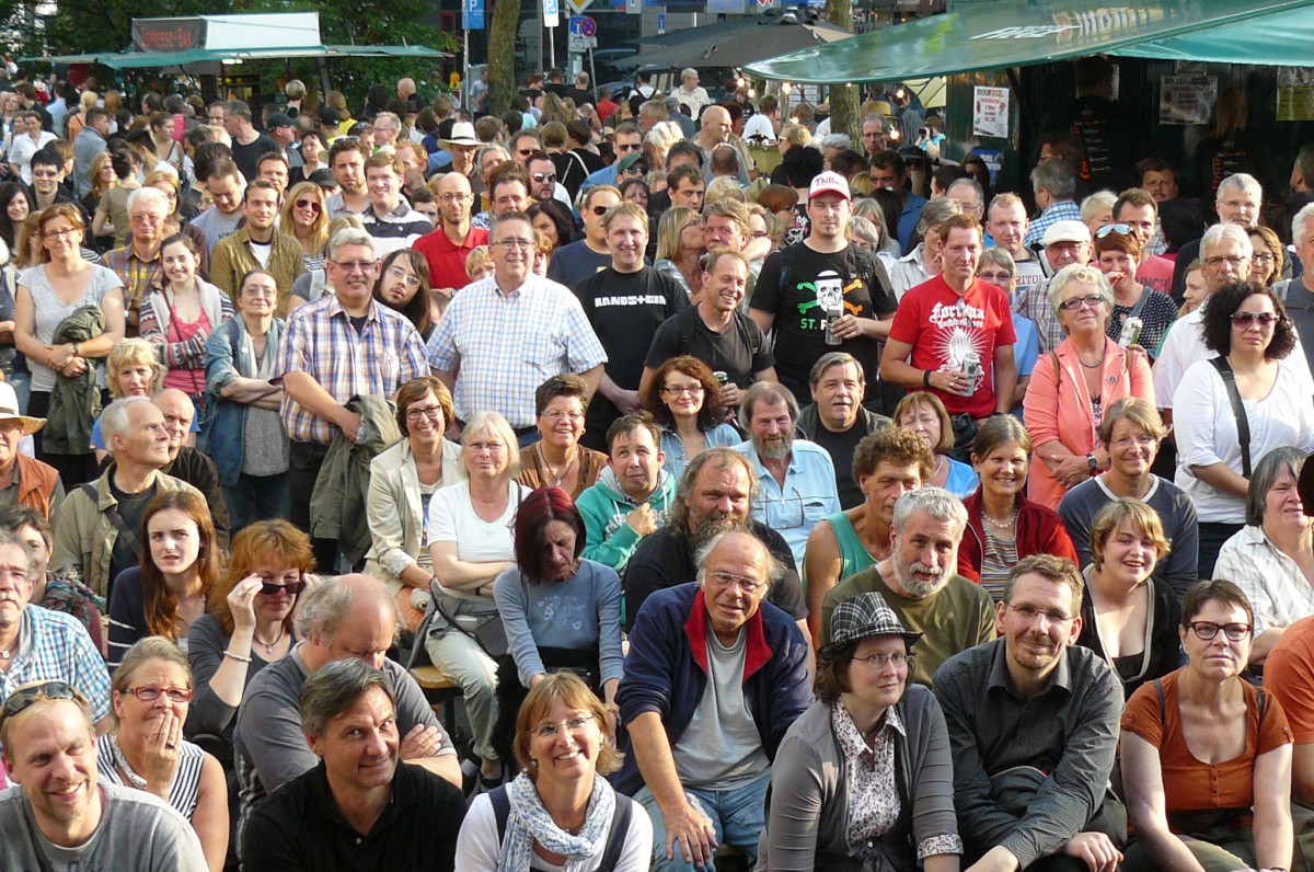Denn das Volk bekam stattdessen ein wenig Opium gereicht, und zwar in Form von wie immer gut recherchierten und launig erzählten Fußballanekdoten. Bestseller-Autor und VfL-Edelfan Ben Redelings, bundesweit bekannt für seine Klo-Lektüren, erzählte auf routinierte Art Dönnekes aus 50 Jahren Bundesliga. Ohne Assistenz durch einen prominenten Sidekick wie auf seinen legendären Scudetto-Abenden gab der große Archivar der Fußball-Randnotiz der Menge, wonach sie verlangte: Bekanntes und weniger Bekanntes von Ente Lippens, Wolf-Dieter Ahlenfelder und Heribert Faßbender. Dessen Bonmot „Toulouse or not to lose, das ist hier die Frage“ erheiterte die Leute an der trailer-wortschatzbühne ebenso wie zuvor schon etliche bei einer ausgiebigen Sitzung.