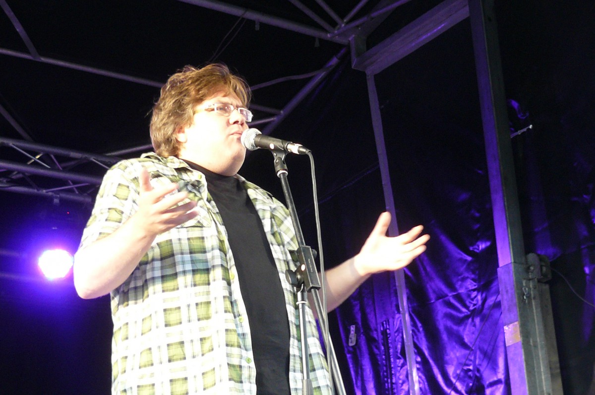 Als auf den meisten anderen Bühnen schon der Saft abgedreht wurde, liefen auf der trailer-wortschatzbühne Honigdieb noch zu großer Form auf. Die an diesem Abend dreiköpfige Band rund um ihren extrovertierten Sänger Sir Hannes hatte eine nicht eben kleine Fangemeinde mitgebracht und stimmte ein in den kulturkritischen Grundtenor des Tages mit der Frage „ob es noch echte Künstler gebe“. Mit ihrer eigenwilligen Mischung diverser Musikstile und vor allem der leidenschaftlichen Bühnenshow rissen sie die wogende und textsichere Menschenmenge mit und sorgten für einen angemessenen Tagesabschluss an der trailer-wortschatzbühne.