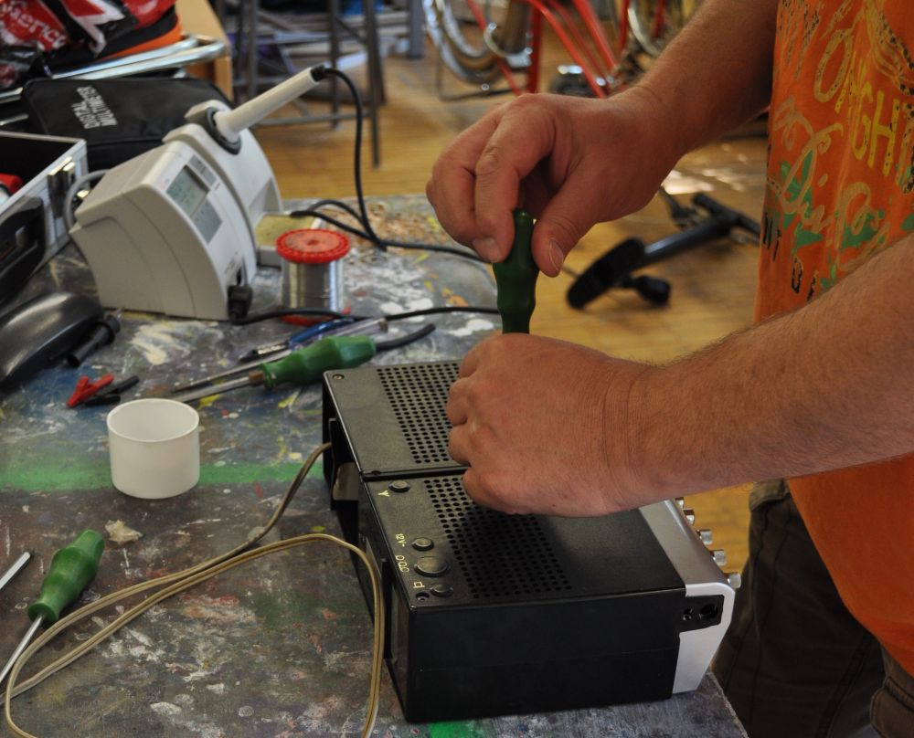 Vom Smartphone über den PC bis hin zu Fahrrädern, Plattenspielern und Küchenmaschinen hat schon einiges die Reise zum Treff angetreten. „Alles, was man tragen kann, darf man zu uns bringen“, lacht Meins. Was Initiator Meins erstaunt: Dass viele gar nicht mehr wüssten, wie man einen Fahrradreifen flickt. Dabei ginge das schnell und sei ganz einfach. Achtzig Prozent der mitgebrachten Geräte können die Mitarbeiter des Reparatur-Cafés retten. Oftmals ist nicht das Gerät an sich defekt, sondern nur ein Einzelteil. „Das ist die sogenannte geplante Obsoleszenz. Das heißt die Herstellerfirma berechnet, nach welcher Zeit ihr Gerät den Geist aufgibt“, erklärt der Initiator mit elektrotechnischer Ausbildung. Einzelteile können dann nachbestellt und final vor Ort getauscht werden.