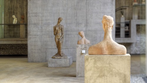 Und dann gibt es in diesem Trakt noch die eine Passage, in die man vom Eingangsbereich aus direkt kommt und in der auf engstem Raum und bei mäßiger Beleuchtung plastische Werke von Künstlern wie Belling, Lipchitz, Marini, Max Ernst oder Zadkine ausgestellt sind, welche die Geschichte der jüngeren Bildhauerei erst recht lebendig werden lassen – wir haben es hier mit einem Skulpturen-Museum von europäischem Zuschnitt und Rang zu tun. Das sollte sich dann, wenn die wichtige Jubiläumsausstellung zur „Knienden“ wieder aufgelöst ist, konstant auch in den Wechselausstellungen zeigen.