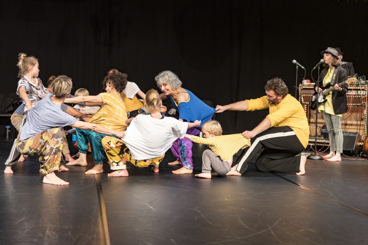 Jedes Ensemblemitglied durfte sich eine Aktion wünschen, die in der neuen Inszenierung von Barbara Fuchs enthalten sein sollte. Ein Kind wünschte sich „Schokolade essen“ und tatsächlich, in der Mitte der Aufführung von „Mischpoke“ gibt es einen Moment, in dem alle innehalten und Schokolade futtern. Nicht nur die Darsteller, auch das Publikum wird versorgt. „Mischpoke“ ist ein Titel, in dem deutsch-jüdische Ambivalenzen mitschwingen, freundlich abwertend spricht man von der Familie mit all ihren Verzweigungen. Tatsächlich füllt sich die Bühne mit 14 Akteuren, die vom 3-Jährigen bis zur 71-Jährigen so etwa das komplette Spektrum der Generationen abdecken. Da klingt ein Gemeinschaftsgefühl an, wie es „Fridays for Future“ gerne knüpft. „Ich wollte einmal ein Stück für alle machen“, erklärt Barbara Fuchs, die sich angeödet fühlte von den Überlegungen zu einem imaginären Zielpublikum, wie sie gerne von Didaktikern angestellt werden, die über Fördergelder zu entscheiden haben. Tatsächlich gehört die Choreographin zu jenen vier Tanzkünstlerinnen, die in NRW eine Spitzenförderung von 240 000 Euro für die nächsten Jahre erhalten.
