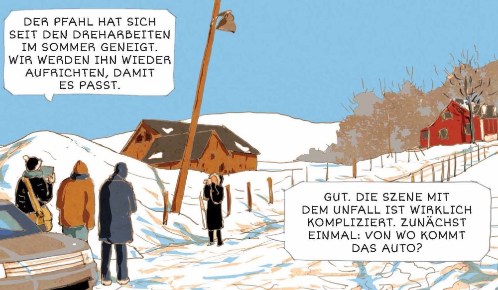 Comic und Storyboard verbindet eine große Verwandtschaft. Ersteres ist eine fast zur selben Zeit wie der Film entstandene Form des sequentiellen Erzählens in Bildern, Letzteres ist ein Hilfsmittel zur Realisierung eines Filmprojektes. Auf diesen Verbindungslinien gleitet der Comic „Das Storyboard von Wim Wenders“ von Stéphane Lemardelé wunderbar entlang: Ein Storyboarder wird für schwierig zu planende Szenen und Dreharbeiten herangezogen, um als Orientierungspunkt eine gezeichnete Vorstellung des geschnittenen Films zu liefern. Wim Wenders fragt Lemardelé für die Eröffnungsszenen von „Every Thing will be fine“ (2015), die u.a. in Kanada auf einem gefrorenen See gedreht werden sollen. Lemardelé macht daraus wiederum einen Comic. Obendrein gibt es Auszüge aus dem originalen Storyboard sowie Szenen von den Dreharbeiten (Splitter). Nicht ganz so tief geht „Klassiker der Filmgeschichte“ von Thébaudeau und Gambin ins Thema. Der Band galoppiert durch die Filmgeschichte, liefert Infos zu Klassikern und deren Kontexten und erzählt jeweils in kurzen Anekdoten von Entstehung und Produktion. Aufgrund der französischen Provenienz mit leichtem Überhang französischer Filme, was für Cineasten aber in Ordnung sein sollte. Ein hübsches Coffee Table-Book (Splitter).