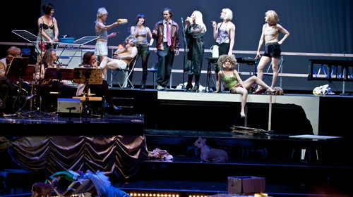 Eigentlich wünscht man sich nur, dass das Schiff mit den acht Segeln kommt und mit 50 Kanonen die Bühne beschießt. Häufiger fragt man sich: Was ist das für ein Geschrei? Regisseur Christoph Frick inszeniert am Bochumer Schauspielhaus „Die Dreigroschenoper“ von Bertolt Brecht als pseudoflippige Nummernrevue, die das Publikum brav mit ständigem Zwischenapplaus goutiert. Die Bühne ist ein leergefegtes Gerüst, auf dem die Protagonisten des Stücks mit Musik in einem Vorspiel und acht Bildern ständig anwesend sind, die Requisiten auf- und abbauen und ihre Gesangspartien abliefern. Frick zelebriert Brecht mit ideengespickter Beiläufigkeit. Auch die interessante Liveband, eigentlich das Highlight des Abends, muss nicht nur musizieren, sondern ab und an mitspielen.