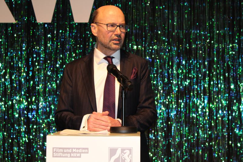 Simonischek kam kurz darauf im Gespräch mit Moderator Ingo Schmoll selbst zu Wort und gab einige Einblicke in die Arbeit an seiner Rolle und deren äußerem Erscheinungsbild. „Die Vorstellungen vom Äußeren von Toni Erdmann waren bei Maren Ade so klar, so deutlich und so lebendig, dass ich fasziniert war von ihrer Fantasie. Bis ich dann ihren Vater sah, da wusste ich, woher das kam.“ Natürlich ist der Schauspieler gespannt und neugierig, wie der Film in wenigen Tagen bei der Oscar-Verleihung abschneiden wird, auch wenn er am Abend des NRW-Empfangs beim kleinen britischen Bruder des Oscars, den BAFTAs, gegen „Son of Saul“ den Kürzeren ziehen musste. Die Tatsache, dass Hollywood über ein Remake des Films nachdenkt, empfindet Simonischek eher als Ehre: „Wenn Jack Nicholson den Film gesehen hat und sich dadurch so inspiriert fühlt, dass er sich nach sieben Jahren Filmabstinenz mit dieser Rolle wieder einklinken will, dann ist das doch toll. Da schaue ich mit der beruhigenden Gewissheit zu, dass ich selber das Original bin“, so der sympathische Mime weiter. Auch Petra Müller, die Geschäftsführerin der Film- und Medienstiftung, kam am Abend nicht um die Erwähnung des einen Films herum, „der das ganze Filmjahr überstrahlt hat, „Toni Erdmann“.“ Gleichzeitig konnte Müller aber auch unterstreichen, dass die Filmstiftung 2016 international präsenter war denn je. „Wir waren mit 170 Filmen auf über 120 internationalen Festivals präsent und haben mit ihnen weit über 100 Auszeichnungen erhalten“, fasste Müller zusammen. Vielleicht kommt in wenigen Tagen ja noch der Goldjunge aus Hollywood dazu…
