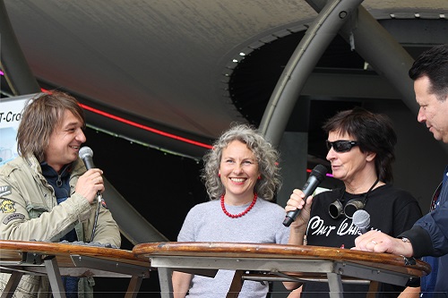 Ja, so viel Lokalfußball-Leaks müssen bei dieser Talk-Runde sein, bevor die Gäste begrüßt werden. Und zu diesem Freiluft-Format am Wahlsonntag wurden gleich acht Promis und KünstlerInnen aus dem Ruhrgebiet eingeladen. Auf der Bühne am Konrad-Adenauer-Platz sprachen die Comedienne Esther Münch, der Entertainer Helmut Sanftenschneider, die Autorin Anja Liedtke, der Musiker Axel Rudi Pell, die Moderatorin Katja Leistenschneider, die Krimiautorin Alexandra Hub, die Leichtathletin Pamela Dutkiewicz und der Schauspieler wie Sänger Horst Freckmann.