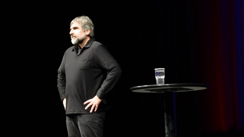 Volker Pispers (57) macht seit über 30 Jahren Kabarett. Seine ersten 15 Jahre verliefen relativ ereignisglos. Damals spielte er vor nur wenigen Gästen, u.a. im Bahnhof Langendreer, der die heutige Show mitorganisierte. Heute hingegen genießt er Kultstatus auf breiter Basis, was er selbst wahrscheinlich nie so sagen würde. Seinen Erfolg verdankt er, neben seiner unnachgiebigen Ausdauer, wohl vor allem seinen sozial-politischen Überzeugungen. In den letzten 15 Jahren, gewann sein Wort zunehmend an Einfluss. Seine Thesen mutierten zu einem Kanon, der, so scheint es, von vielen zur eigenen politischen Positionierung genutzt wird. Innerhalb sozialer Netzwerke gehört das Posten seiner Mitschnitte und Zitate längst zum Alltag. „In Dir muss brennen, was du in anderen entzünden willst“, so das bekannte Zitat von Augustinus, das sich förmlich aufzwingt, wenn man Pispers live erlebt. Die gespitzten Ohren seiner Gäste, die man ruhig Fans nennen darf, wären ihm wohl auch ohne Stehtisch, Wasserglas, Mikrofon und Scheinwerfer sicher. Das Programm „Bis neulich“ wird bereits seit 2002 immer wieder erfolgreich aktualisiert – das Suchen und Finden des Neuen im stetig Gleichen. Auch an diesem Abend im RuhrCongess führte Pispers seinen linksorientierten Vortrag, gewohnt schonungslos und stets unterhaltsam. Ein Pispers‘scher Rundumschlag gegen den Kapitalismus. So wissensgetränkt, mutig und bildend, wie absolut respektlos gegenüber Autoritäten und Ungerechtigkeiten.