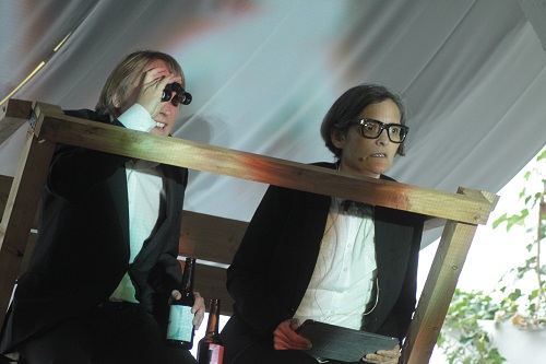 Zur Vernissage des zehntägigen Festivals der freien Szene Bochum erschienen lokale Gäste aus Kultur und Politik. Sie sahen dort Maria Wolf und Helge Salnikau, die in eleganter Abendgarderobe auf einem kleinen Holzgerüst durch den Abend moderierten und mit ihrer Hommage an das Opern-Pärchen Waldorf und Statler aus der Sesamstraße so manche illustren Gäste und VeranstalterInnen der BoBiennale ironisch auf die Schippe nahmen.