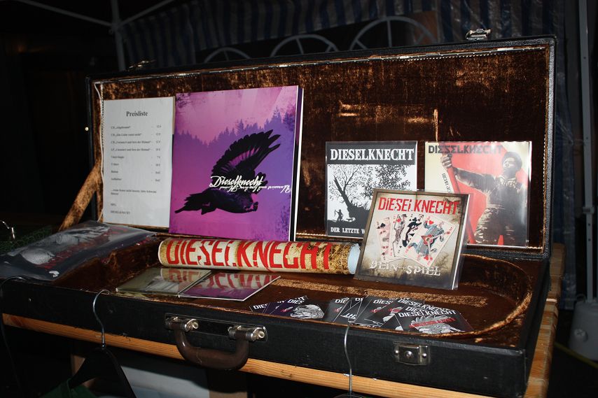 Um 22 Uhr betraten Dieselknecht die Bühne. Die Krautabilly-Band war schon 2011 bei Bochum Total zu Gast. Damals allerdings ohne die Unterstützung von Guntmar Feuerstein. Die nun zu einem Quintett gewachsene Band widmete sich der uramerikanischen Musik zwischen Folk, Southern-Rock und Bluegrass gemixt mit einer Prise Punkrock, was beim feierwütigen Publikum bestens anzukommen schien. In den ersten Reihen wurde getanzt und gepogt, weiter hinten geschunkelt. Dieselknecht verstanden es außerdem, ihre teils zum Trinken animierenden, teils politischen Texte unterhaltsam zu transportieren und vergaßen dabei nicht, das Publikum mit einzubeziehen. Nach einer Stunde glühten Snaredrum und Banjo und Dieselknecht entließen das Publikum mit fast leerem Tank in Richtung Festival-Samstag.