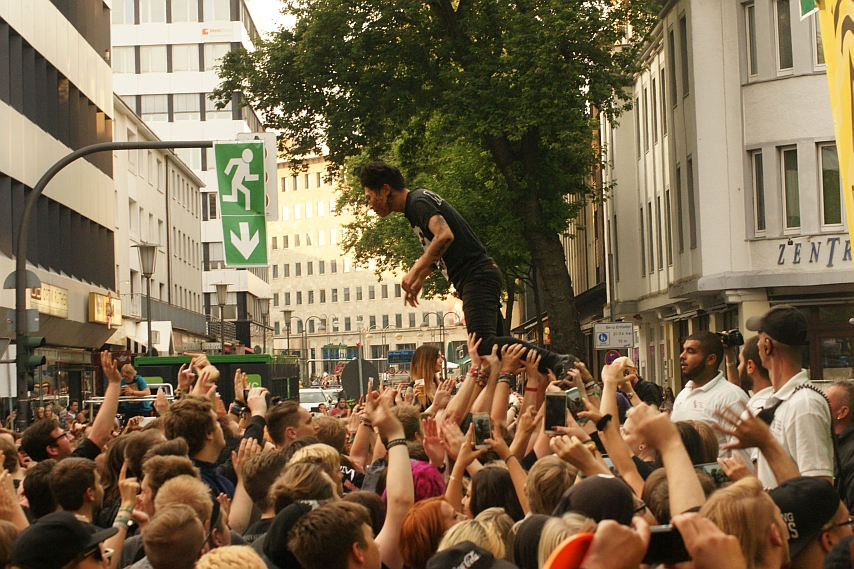Der Himmel machte heute erneut keinen besonders guten Eindruck, doch es war wenigstens wärmer als gestern und der Regen blieb aus. Noch mehr Besucher kamen als am Vortag und die Stimmung schien etwas geladener zu sein. Hier und da lag Exzess in der Luft und an manchen Stellen lag Exzess bereits am Boden.