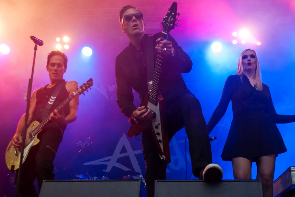 Als Beispiel für ein voll besuchtes Konzert sei hier das der Metalcore-Band Any Given Day am Samstag genannt. Was da auf und vor der Bühne abging, lässt sich nur mit brutal bezeichnen. Bevor es hier einen entsetzten Aufschrei gibt: Brutal ist in dieser Musikrichtung ein Kompliment. Ergo: Es gab musikalisch derbe auf die Fresse, und der Moshpit war hier der wohl heftigste des Festivals. So brutal ein Moshpit aussehen mag, so respektvoll gehen die Fans dabei auch miteinander um. Wer auf den Boden fällt, dem wird schnell aufgeholfen. Und warum da ein Jugendlicher mit einem Stuhl aus dem benachbarten Café in der ersten Reihe auftauchte, werden wir wohl nie erfahren. Die Securitys rissen ihm das Möbel aber schnell aus den Händen und schalten den bedröppelt dreinblickenden Knilch.
