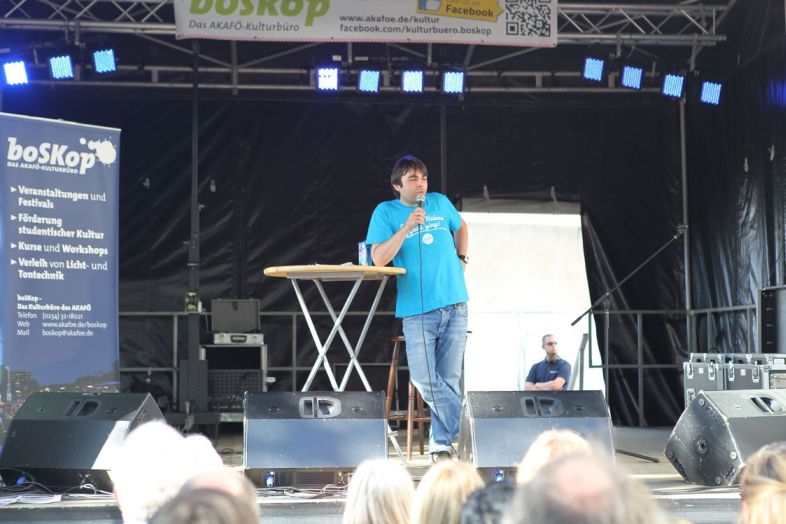 Am Ende des Tages musste das Runde dann aber nochmal ins Eckige. Trainer Baade präsentierte zum Abschluss Texte aus seinem neuen Lese-Programm „Drama Queens in kurzen Hosen". Auch Baade ist kein unbekannter Protagonist im Fußball-Dschungel. Das Magazin „11Freunde“ kürte beispielsweise seinen Blog kürzlichen zum „Besten Fanmedium" in Deutschland. Dass gute Texte nicht immer zwangsläufig auch auf Bühnen funktionieren, musste Baade jedoch heute zum Teil erkennen. Denn seine amüsant geschriebenen Anekdoten von autobiografischem Aschefußball bis Millionärsgekicke hätten frei und stehend vorgetragen wohl eine größere Wirkung erzielt als nur gelesen. Trotzdem sorgte der Auftritt des Trainers für einen adäquaten Schlusspfiff. Der Grundstein für ein gelungenes Festival- und WM-Wochenende wurde in jedem Fall gelegt.
