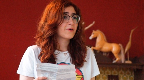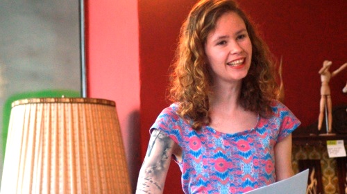 Raus aus dem Paradies, rein in die Scheiß-Spießigkeits-Spirale? Auch Miedya Mahmod, die bei der dritten Ausgabe der Lesebühne zu Gast ist, erteilt einer trostlosen Konformität eine Absage. „Vom Bräunen und Beige“, so der Titel des Beitrags, den die Poetry Slammerin im gemütlichen und gut besuchten Café Eden vorträgt. Es geht um beige Dress-Codes alter Menschen, Sonnenstudios, Großraumdiscos. Oder um Pärchenabende, Elternabende, Tatortabende. Exklusiven kulturindustriellen Muff: Tim Bendzko zum Träumen, Mario Barth zum Lachen. „Mittelmaß, das reimt sich auf Reihenhaus“, raunt Mahmods lyrisches Ich über diese Durchschnitts-Tristesse.