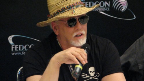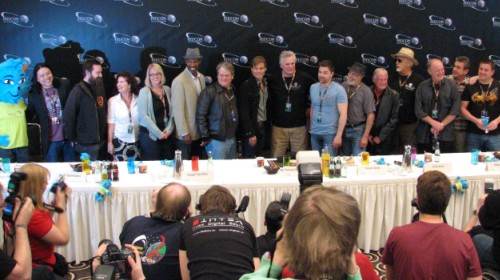 Weniger ernst ging es bei den meisten öffentlichen Panels mit den Schauspielern zu. Walter Koenig, Fähnrich Pavel Chekov in den klassischen Folgen von „Raumschiff Enterprise“, tänzelte trotz seiner mittlerweile 75 Jahre beschwingt über die Bühne, stellte sich den Fragen seiner Fans und präsentierte den 8minütigen Kurzfilm „Handball“, in dem er nicht nur die Hauptrolle übernommen, sondern auch das Drehbuch geschrieben hatte. Am größten war der Zulauf freilich bei den Veranstaltungen mit Koenigs Enterprise-Captain James T. Kirk: Der 81jährige William Shatner, lebende Legende, stellte sich mit professionellem Humor und Understatement den teilweise skurrilen Fragen des Publikums. Eine forsche Besucherin traute sich sogar, Shatner darauf anzusprechen, warum er denn immer wieder Alben aufnehmen würde, obwohl er doch gar nicht singen könne. Der deutlich in die Breite gegangene Kanadier gab unumwunden zu: „Ja, du hast ein Geheimnis entdeckt, das ich eigentlich im Verborgenen halten wollte: Ich kann nicht singen.“ Aufgrund seiner Liebe zum gesprochenen Wort habe er aber immer wieder gerne zugesagt, wenn ihn Plattenfirmen gebeten hatten, klassische Texte der englischsprachigen Literatur mit Musik zu kombinieren. Shatners neuester Streich hierzu, das Album „Seeking Major Tom“ mit etlichen Coverversionen bekannter Hits, ist im vergangenen Jahr entstanden.