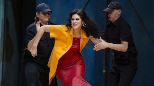 Auf den ersten Blick ist sie eine Carmen wie aus dem Bilderbuch – oder vielmehr wie eine, die im Gelsenkirchener Barock auf billigen Kaufhausgemälden über dem Sofa hing: mit tiefschwarzer Wallemähne und überdimensionierten Goldringen in den Ohren. Wer nun denkt: „Oh Gott, ist der Regie denn gar nichts Originelles eingefallen“, sollte nicht gleich im ersten Akt die Dortmunder Oper verlassen. Denn letztlich ist Hausregisseurin Katharina Thoma eine wirklich herausragende Produktion gelungen, die zu Recht in der neuen Spielzeit wiederaufgenommen wird.