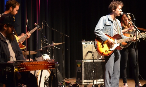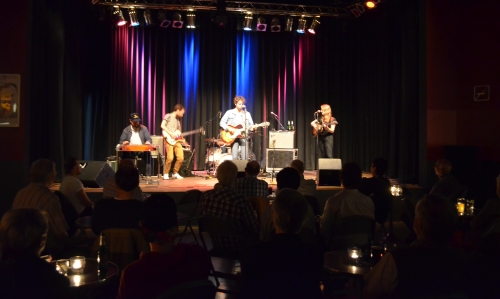 Keine Vorband. Ob Daniel Romano schlicht sich selbst genügte, oder ein Support-Act organisatorischen Gründen zum Opfer fiel, blieb offen. Schade war es in jedem Fall und doch schien das Publikum die Zeit zwischen Einlass und Beginn adäquat mit kühlen Getränken überbrückt zu haben. Denn als um kurz nach 21 Uhr Daniel Romano und seine vierköpfige Band die Bühne betraten, zeigte sich das größtenteils sitzende (!) Publikum bereits angetan vom Charme der Country-Band und applaudierte mehr als höflich. Pedal-Steel, eine Gitarristin wie aus einem Western gepellt, jede Menge Bart und eine stilechte Schlaghose versprühten Charme und unpeinlichen Retro-Charakter. Während es sich auf den Sitzplätzen meist Musikfreunde älteren Semesters gemütlich gemacht hatten, gab es auch ein paar niederländische Gäste, die zumindest rein äußerlich den Anschein machten, den Punk-Background von Romano zu kennen. Seine ehemalige Band Attack In Black schien also zumindest für den Einen oder die Andere ein Besuchsgrund gewesen zu sein. Musikalisch spielte die Ex-Band jedoch an diesem Abend überhaupt keine Rolle. Romano machte direkt mit dem ersten Song klar, dass er es ernst meint mit dem Country. Näselnde Stimme, weiblicher Backround-Gesang, gesetztes Schlagzeug und Pedal-Steel-Gejaule bis der Sheriff kommt. Der 30-jährige Romano aus Ontario, Kanada spielt die uramerikanische Musik wie ein alter Hase und mit voller Hingabe. Eingebracht hat ihm seine Musik bereits mehrere Preis-Nominierungen und Kritiker-Lob von allen Seiten.