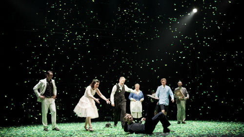Papierschnitzel gelb, silber und grün rieseln vier Stunden lang zu Boden. Im trockenen Regen stehen Peter Handke als Ich-Erzähler und seine verstorbenen Verwandten, die sich traumhaft am Rande des Kärntner Jaunfeld an einer Bank treffen, um die Geschichte der Familie Revue passieren zu lassen. Es ist die Eröffnung des „Stücke“-Festivals, der Mülheimer Theatertage, der Auseinandersetzung um den Mülheimer Dramatikerpreis, der die besten Theatertexte des Jahres im Wettbewerb vereint. Als erster tritt Peter Handke mit „Immer noch Sturm“ in den Ring. Sein jüngstes Gedicht beschreibt die Vorgänge vor, während und nach dem Zweiten Weltkrieg aus Sicht der unterdrückten Kärntner Slowenen.