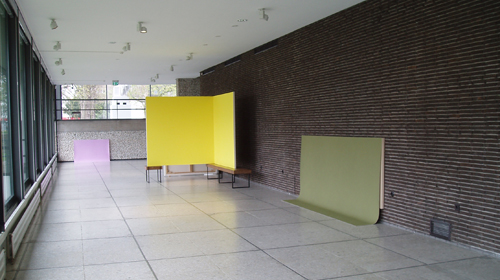 Wo endet die Malerei, wo beginnt die Skulptur? Wie verhält sich Farbe im Raum, wann nimmt der Raum malerische Qualitäten an? Das sind nur einige der Fragen, welche die Kunst von Martina Klein aufwirft und nun in der Straßengalerie des LehmbruckMuseums anschaulich zum Ausdruck bringt. Martina Klein, die 1962 in Trier geboren wurde und in Düsseldorf lebt und arbeitet, versteht sich als Malerin. Ihre Kunst, so wie sie diese seit zwei Jahrzehnten praktiziert und in solchen Galerien wie Konrad Fischer/Düsseldorf, Lefebvre/Paris, Slewe/Amsterdam und Tschudi/Glarus ausgestellt hat, zeigt monochrome Flächen. Aus der Nähe ist eine Verdichtung der Farbe als handschriftlicher Vortrag zu sehen und dieser Eindruck trägt weiter zur Anmutung von Einheitlichkeit, Stofflichkeit und unaufdringlicher Intensität des malerischen Auftrags bei. Darüber hinaus: Die Malerei von Martina Klein besitzt ein explizit räumliches Moment, indem sie die Tafeln in und zu ihrer Umgebung setzt.