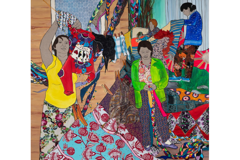 Wasim Campusmuseumstreng getrennt zu besichtigen ist, trifft hier in reizvollen Konstellationen aufeinander.So zieht nun im Bereich „Produzieren“ auf dem Boden Ueckers „Sandmühle“ von 1968 gemächlich ihre Kreise, nichts als Rillen im Sand produzierend – direkt vor Małgorzata Mirga-Tas’ selbstreferenzieller Textilcollage. Ihr Bildmotiv zeigt, wie die Rom:nja-Künstlerin voller Gestaltungseifer mit ihren „Sisters“ (2019) genau diese bunten Patchworks herstellt. Johanna J. Baiers Fotoserie von Sexarbeiterinnen (Bereich „Konsumieren“) hängt neben attischen Gefäßen mit Hetären-Motiv. „Transformieren“ umfasst den Herkules-Diobol aus vorchristlichen Zeiten wie auch die Regalobjekte der Hohenbüchlers, die antike Figuren neben Miniskulpturen und Skizzen von Studierenden wie Handelsware präsentieren.