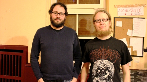 Alex, Historiker und Musikliebhaber, verfolgte den Werdegang des Black Metals. Was führte zur Bezeichnung eines neuen Genres? Die englische Band „Venom“ veröffentlichte 1982 das Album „Black Metal“. Doch musikalisch unterschied sich die Platte nur marginal von den Thrash-Metal Alben seiner Zeit, wie das Musikbeispiel den mehr oder weniger geneigten Ohren der Zuhörer im SZ zeigte. Allein die zur Schau gestellte Nähe zum Satanismus und die Live-Auftritte legten den ersten Stein für den Weg zum Genre Black Metal. Als Genre herausgebildet hat sich der Black Metal erst richtig Ende der Achtziger/ Anfang der Neunziger, als in Norwegen eine Handvoll Jugendlicher eine neue Musikform zelebrierte, fährt Alex fort. Bands wie „Mayhem“, „Darkthrone“ und „Burzum“ entstanden, junge Musiker, die sich selbst Namen wie Euronymous, Varg und Dead gaben, versuchten sich an einem neuen Stil. Mehr Satanismus, mehr Primitivität im Sound und mehr Äußerlichkeit. Es dauerte nicht lange, bis das Genre von sich reden ließ: Kirchenbrände, Suizid und Mord. Ein Einschnitt stellte der Mord von Varg Vikernes, der Kopf hinter „Burzum“, an Euronymous von „Mayhem“ dar. Varg, mir richtigem Namen Kristian, zu einer Haftstrafe von 21 Jahren verurteilt. Im Gefängnis sponn er seine rechtsradikalen Gedanken aus und weiter, wandte sich vom Black Metal ab, da es angeblich Negermusik sei und avancierte von dort zu einem Mitbegründer des NSBM-Szene.