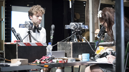 Das Projekt Kafka beginnt in einer morgendlichen Konferenzrunde im Seminarraum. Man macht sich fertig für das Monitoring Familie, der kleinsten Einheit im Staat, hier die Totalität selbst. Vater, Mutter, Tochter, sie alle tragen danach Masken im Gesicht und Narben am verschlossenen Herzen. Man trachtet nach der heilen Welt, man trachtet nach Besitztum und Anerkennung. Da kommt die Verwandlung zum falschesten Zeitpunkt, gerade hat man sich arrangiert mit dem schönen Leben, hat den Versorger im Haus, der Vater ihm sogar die lange Latex-Nase angeboten (und angeklebt), doch der will scheinbar nicht mehr mitspielen, entwickelt sich zum Ungeziefer, das natürlich ausgerottet werden muss. Aber erst einmal lebt man mit Speis und Trank und Dienstmädchen (Nola Friedrich) nebenher, muss sich nur dem Prokuristen (megagrotesk: Henry Meyer) beugen. Die Regie inszeniert eine Ahnung von Normalität, um sie sogleich wieder zu zerstören. Kameras machen die Gesichter permanent präsent auf der Leinwand. Dann hat Gregor/Paris gewählt, doch wie in der griechischen Mythologie hat das seinen Preis, der göttliche Wahn ist nur von kurzer Dauer. Die Macht der Herrschenden ist groß, ihr Urteilsvermögen eng begrenzt. Nur das Dienstmädchen erkennt kurz die Aura hinter der eingestürzten Fassade. Wie in einem Kokon gefangen gleiten die Ereignisse zäh an Gregor vorbei. Nach zwei Stunden ist seine Kraft verbraucht.