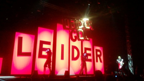Als Deichkind kommen, ist das nach derart angefachter Spannung fast enttäuschend. Kleine Menschen auf einer riesigen Bühne. Was dann folgt sind eineinhalb Stunden Kindergeburtstag auf Acid. Auf der Suche nach dem besten Platz – die Leinwände rechts und links der Bühne sind leider ausgeschaltet, um die Show von Deichkind nicht zu verpassen muss man mitten rein – hört man mehrfach den Ausspruch „Welche Drogen nehmen die, die will ich auch!“. Doch je weiter die Bühneneskapaden voranschreiten, desto mehr fragt man sich, ob man diese Drogen wirklich will. Für die aufwendig inszenierten Kulissen und wechselnden Outfits des Sextetts sind die einzelnen Stücke paradoxerweise eine Art Camouflage. Ein Pluspunkt, denn auf dem 2012 erschienenen und bisher kommerziell erfolgreichsten Album „Befehl von ganz unten“ zünden live eigentlich nur die Chartausbüchser „Bück Dich hoch“ und „Leider geil“. Alles andere wird von einer surrealen Parade im Stil einer durchgeknallten Haute Couture-Show überstrahlt.