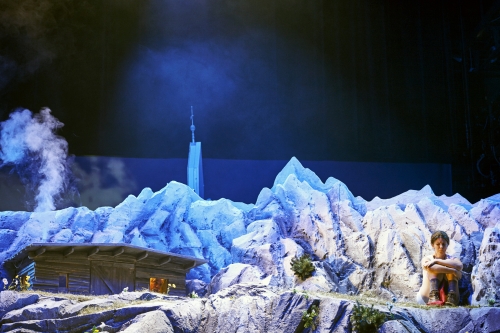 Manche Weihnachts-Inszenierungen werden ins neue Jahr hinein gespielt, mache haben das verdient. Florian Fiedlers Hingucker „Heidi“ am Theater Oberhausen hat so ein festtagsfreies Gelände: die Schweizer Berge. Dort entscheiden sich im tiefen Schnee nicht nur zwei Mädchenschicksale, zu lernen gibt es auch was über den Sinn von Bildung, Freundschaft und – das Neureichtum. Fiedlers Inszenierung ist eine Neufassung aus seiner Hannoveraner Zeit, selbst das Bühnenbild wurde von dort angefahren und das fette drehbare Alpen-Panorama mit knuffiger Perspektive-Gag-Hütte ist allein schon sehenswert. Die Rückseiten zeigen auch das kärgliche Innere des Holzverschlages mit Realfeuer und die schicke Frankfurter Designbude von Klaras Vater, dem Sesemann, je nachdem wer an der Bühne dreht.