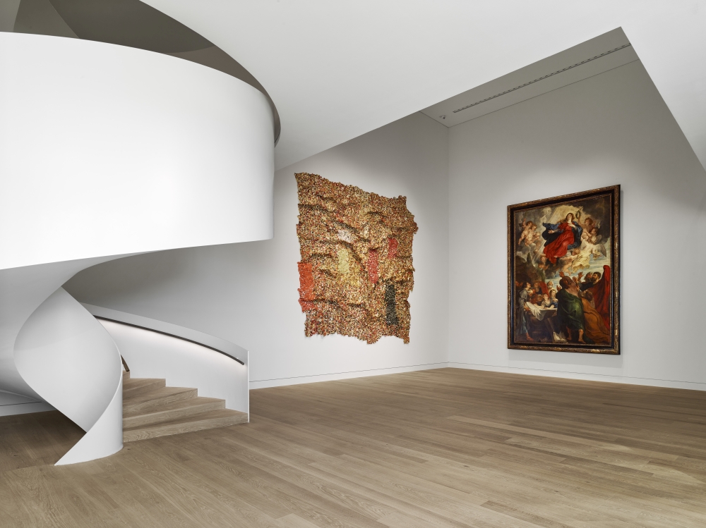 Felix Krämer geht nun einen neuen Weg, indem er die angewandte Kunst und überhaupt die populäre Kultur einbezieht und dezidiert weitere Gesellschaftsschichten erreichen will. Er zeigt Designprodukte und Tendenzen der Fotografie, stellt aber auch Künstler:innen mit Bezug zu Düsseldorf vor. Und er fügt das alles nun zu einer Einheit zusammen in der Neupräsentation der Sammlung. Nach drei Jahren Umbau – zur Beseitigung von Gebäudeschäden und Modernisierungen – hat der Sammlungstrakt unlängst wieder eröffnet, beginnend schon im Neubau in einer schier überwältigenden, aber doch gelassenen, großzügig bespielten Folge von Räumen, Sälen und Übergangsräumen. Die Architektur dazu ist großartig! Die Werke reichen vom Mittelalter – beginnend mit Marienfiguren und kultischen Skulpturen mit Gottheiten aus Kambodscha und Tibet – bis in die Gegenwart, und es ging den Kuratoren des Kunstpalast darum, Zeiten, Stile und Zusammenhänge über die Kulturen und Sparten hinweg herauszuarbeiten. Die Künstlerpersönlichkeit tritt demgegenüber in den Hintergrund, das ermöglicht, weniger bekannte Künstler:innen einzubeziehen, ja, sie an den Meistern zu messen. Natürlich kann dieser komprimierte Ritt durch die Jahrhunderte und die Sparten nur Denkanstöße geben – für die Vertiefung gibt es an anderen Orten Spezialmuseen.