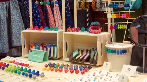 Einen erkennbaren Trend auf den aktuellen Märkten bildet die nachhaltige und klimafreundliche Anfertigung der Waren. Zwar kontrollieren die Initiatorinnen Anna und Katherina nicht jeden einzelnen Produktionsschritt der Labels; gern gesehen ist die Rücksichtnahme auf unseren Planeten aber natürlich trotzdem. Und dass sich auch ohne dementsprechende Aufnahmebedingungen ein großer Anteil an klimafreundlich hergestellten Artikeln beim Design Gipfel findet, ist umso erfreulicher. So war zum Beispiel „Upcycling“ ein großes Thema in Essen. Upcycling beschreibt die Wiederverwendung alter Gegenstände für hochwertigere Produkte. Das Label „Ko-j“ zum Beispiel macht Spiegel aus Autoreifen, und Designerin „alexascha“ verwendet unter anderem altes Glas und Keramik für ihren Schmuck.