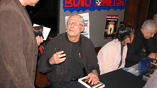Auch dieses Mal kam der fast 80-jährige Muskelmann nicht allein, sondern hatte seinen Produzenten und Drehbuchautoren Robert D. Weinbach mitgebracht, mit dem er seit rund 50 Jahren befreundet ist und mit dem er schon 1974 mit „Das Labor des Grauens – The Freakmaker“ einen gemeinsamen Film realisiert hatte. Kurzfristig konnte auch noch Regisseur Julian Richards als Stargast gewonnen werden, der Genrefreunden in Deutschland insbesondere durch seinen (hierzulande stark gekürzten) Film „The Last Horror Movie“ bekannt sein dürfte. Im anschließenden Gespräch mit Clubvorstand „Heinz Klett“ ging Richards u.a. auch auf diese Schnittauflagen ein.