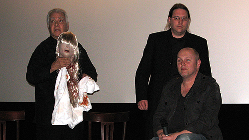 Doch zunächst ging es nach der Projektion von „Shiver“, der mit so illustren Stars wie Danielle Harris, Casper Van Dien und Rae Dawn Chong aufwarten kann, in der Talkrunde um die Entstehungsgeschichte dieses aktuellen Films. Die Geschichte um einen psychopathischen Serienkiller (eindringlich: John Jarratt), der seine weiblichen Opfer köpft und die Schädel im Kühlschrank konserviert, wurde deutlich weniger blutig in Szene gesetzt, als man von Julian Richards auf dem Regiestuhl hätte erwarten können. Er konstatierte: „Suspense interessiert mich am meisten an einem Film“. Deswegen setzte er bei dieser „Woman in Peril“ (Frau in Gefahr)-Geschichte auf unterschwellige Spannung und einen dazu passenden orchestralen Soundtrack, der an die Arbeiten des Hitchcock-Komponisten Bernard Herrmann erinnern sollte.