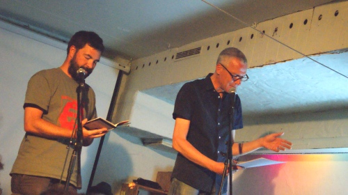Als Meisterwerk der Beat-Generation gilt auch Allen Ginsbergs Gedicht „Howl“ („Das Geheul“). Das Duo Dond und Daniel las den Text auf deutsch und englisch – zum Glück, denn vor allem in der Originalfassung gibt es einen tollen Klang der Worte: „yacketayakking screaming vomiting whispering facts and memories and anecdotes and eyeball kicks and shocks of hospitals and jails and wars.“
