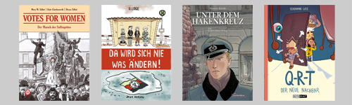 Bryan Talbot erzählt zusammen mit seiner Frau Mary M. Talbot und der Zeichnerin Kate Charlesworth in „Votes for Women“ die Geschichte der Sufragetten im England zu Beginn des 20. Jahrhunderts. Anhand des fiktiven Dienstmädchens Sally begleiten wir die Entwicklung der zunehmend militanten Frauenbewegung, die schließlich auch für Bombenanschläge verantwortlich ist. Dabei kommt vor allem das Abbild der restriktiven Gesellschaft jener Zeit nicht zu kurz und erklärt die Vehemenz, mit der die Bewegung auftritt. Passend: Im Februar kommt ein Spielfilm zum Thema ins Kino (Egmont). Ulla Loge hat die Wiedervereinigung mit 10 Jahren erlebt. Entsprechend ist ihre Geschichte „Da wird sich nie was ändern“ über die letzten Tage vor der Maueröffnung aus atmosphärischen Momentaufnahmen zusammengesetzt: Die Wege ihrer ganz unterschiedlichen Protagonisten in einer Kleinstadt kreuzen sich lose oder laufen Parallel, aber alle sind verunsichert von den Ereignissen. Loge zeichnet mit dynamischem und wildem Strich eine unsichere Zeit des Umbruchs, des Wegbruchs (Jaja Verlag). Schon vor etlichen Jahren ist die Reihe „Unter dem Hakenkreuz“ gestartet und das auf zehn Alben angelegte Projekt von Zeichner Jean-Michel Beuriot und Autor Philippe Richelle ist mit „Einer muss es tun“ nun tatsächlich schon beim siebten Band angelangt. Die Liebesgeschichte zwischen der Jüdin Katharina und dem Wehrmachtoffizier Martin ist aus dem Blickfeld gerutscht, dafür wird Martins innerer Widerstand langsam immer entschlossener und im Juni '44 wird er in ein Attentat involviert. Beuriot und Richelle bleiben trotzdem ihrer Alltagsperspektive ohne Schwarzweiss-Zeichnung treu und beleuchten die vielen Nuancen zwischen bedingungslosem Widerstandskämpfer und begeistertem Nazi (Schreiber & Leser).