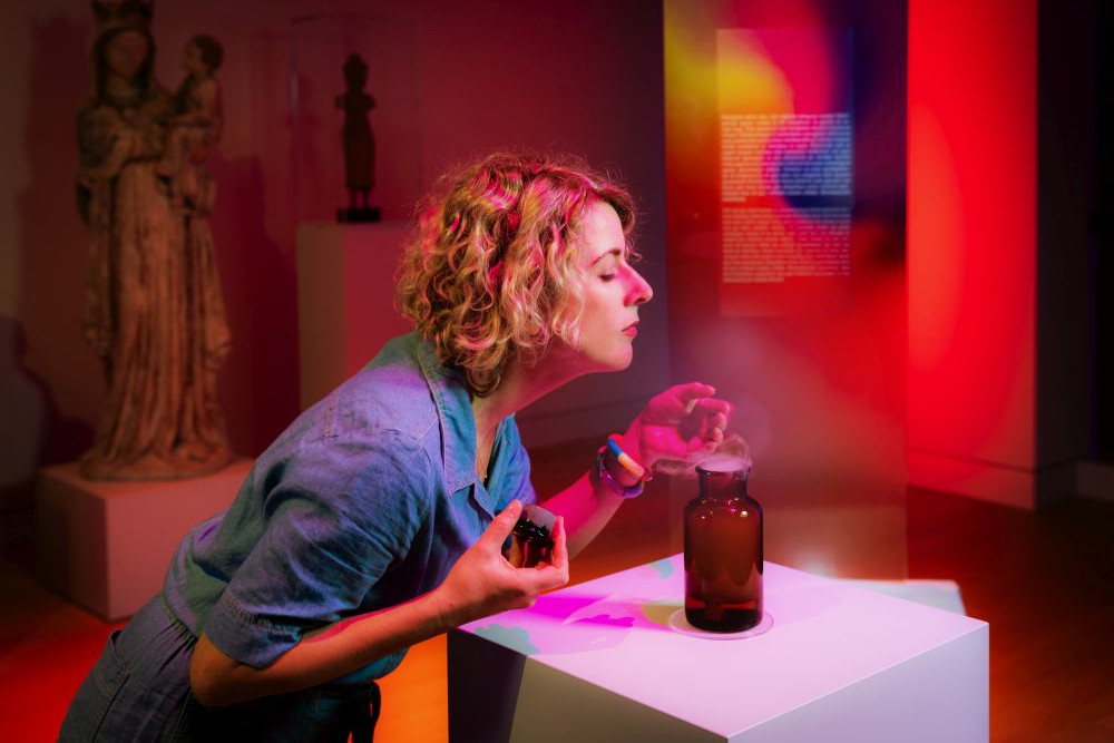 Der Kunstpalast im Ehrenhof in Düsseldorf versteht sich primär als kulturhistorisches Institut, das Trends und Moden berücksichtigt und sie im Verhältnis zur bildenden Kunst setzt. Das geschieht hier nun auch mit dem Geruchssinn, der eklatant unterschätzt wird. In Verbindung mit Fotos, Gemälden und Raumeindrücken sind rund dreißig „Duft-Stationen“ von der Antike bis zur Gegenwart eingerichtet worden, welche die jeweiligen Epochen erfahrbar machen oder jedenfalls näherbringen. Das Erleben der Zeiten und Situationen (etwa auch des Ersten Weltkriegs) umhüllt die Besucher. Zeitgeschichte wird sinnlich erfahren.