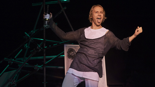 „Give it to me baby“.Peer Gynt ist unser Held, geboren zu Hägstad von der Mutter Aase, zum Kaiser geworden in Ägypten, verfolgt vom Knopfgießer, gerettet von der Jungfrau Solvejg. Die Vita ist o.k., hört sich verdächtig geklaut an, aber das nennt sich heute ja eher samplen. Romy Schmidt hat den alten Ibsen genauso behandelt, mit Respekt, aber ohne Ehrfurcht. Die Handlung rauscht vorbei, vieles bleibt in einem absurden Nebel verborgen, doch Aases Tod im ersten Drittel war sicherlich ein emotionales Highlight, ob alles ans Publikum verkauft wird? Der Markt wird das schon richten, oder Corinna Pohlmann, sie hat Solveig drauf und Ingrid und es reichen ihr dafür ein paar Kleiderwechsel. Für die „hässliche“ Tochter des Dovre-Alten helfen ein paar bereits erwähnte Gummibänder, Pohlmann ist auch die Jungfrau in der Oase und der Kapitän. „I am what I am“, die einstige Gloria-Gaynor-Hymne der Lesben und Schwulen hat heute für uns alle Bedeutung. Denn wir sind definitiv nicht mehr die, die wir eigentlich sein wollen, und das muss nicht zwangsläufig ein trolliger Peer sein.