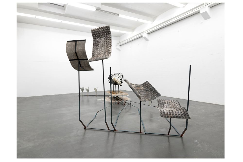 Der erste Raum gehört der US-amerikanischen Künstlerin Ilana Halperin und ihrer Reihe „The Rock Cycle“, bei der sie Hinterlassenschaften einer schottischen Ziegelei in das kalkreiche Wasser in der französischen Höhle Fontaines Pétrifiantes legt, wo sie einhundertmal schneller verkrusten als in anderen Kalksteinhöhlen. Die jetzt organisch wirkenden Gegenstände in der Vitrine haben eine ganz eigene, vom Menschen freie Formensprache angenommen. Die insgesamt sechs künstlerischen Positionen, die mit einem neuen Materialismus gearbeitet haben, fordern natürlich auch vom Besucher einen neuen Blick auf die Objekthaftigkeit der Werke, deren tiefere theoretische Schichten manchmal erst ausgegraben werden müssen. Aber dafür ist Kunst ja auch da und – sie brauchen keine Schüppe.