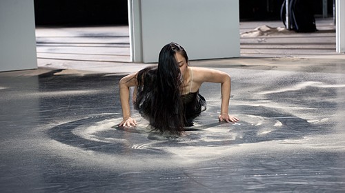 Sieben weiße Türen, dahinter metallischer Stangenwald, langsam rieselt Sand auf den Boden. Das Stundenglas leert sich. Anders als bei Flüssigkeiten strömen die Sandkörner gleichmäßig. Zeit zum Nachdenken, reflektieren, sammeln. Wer gedacht hatte, dass Malou Airaudo bei ihrer zweiten Choreografie mit dem Herner Tanztheater Renegade in den Bochumer Kammerspielen wieder ein Feuerwerk abbrennen würde, wurde großartig überrascht. Das Stück „Der verlorene Drache“ ist eine Hommage an die vergehende Zeit, unaufgeregt, bewegungsstark und mächtig in der Leere. Den Titel habe sie in einem Café aufgeschnappt, sagt Airaudo im Interview. An Feuer und Energie habe sie das erinnert; mir schwebte während der Performance eher das Bild des im Baum hängenden Papierspielzeugs vor Augen, das verloren scheint, obwohl es eben noch der Herrscher der Lüfte war. Traurigkeit ist eines der ganz wichtigen Elemente, mit denen das Tanztheater spielt. Malou Airaudo, einst Tänzerin bei Pina Bausch, hatte mit „Irgendwo“, einer Tanzorgie auf Holzkästen, im letzten Jahr einen Publikumsrenner. Damals galt es als Wagnis, die B-Boys in eine klassische Choreografie einzubauen. Doch das ist eigentlich nie geschehen. Airaudo kreierte eine ziemlich ungewöhnliche Melange aus beiden Stilen, die dann sogar als neue Tanzform gefeiert wurde.