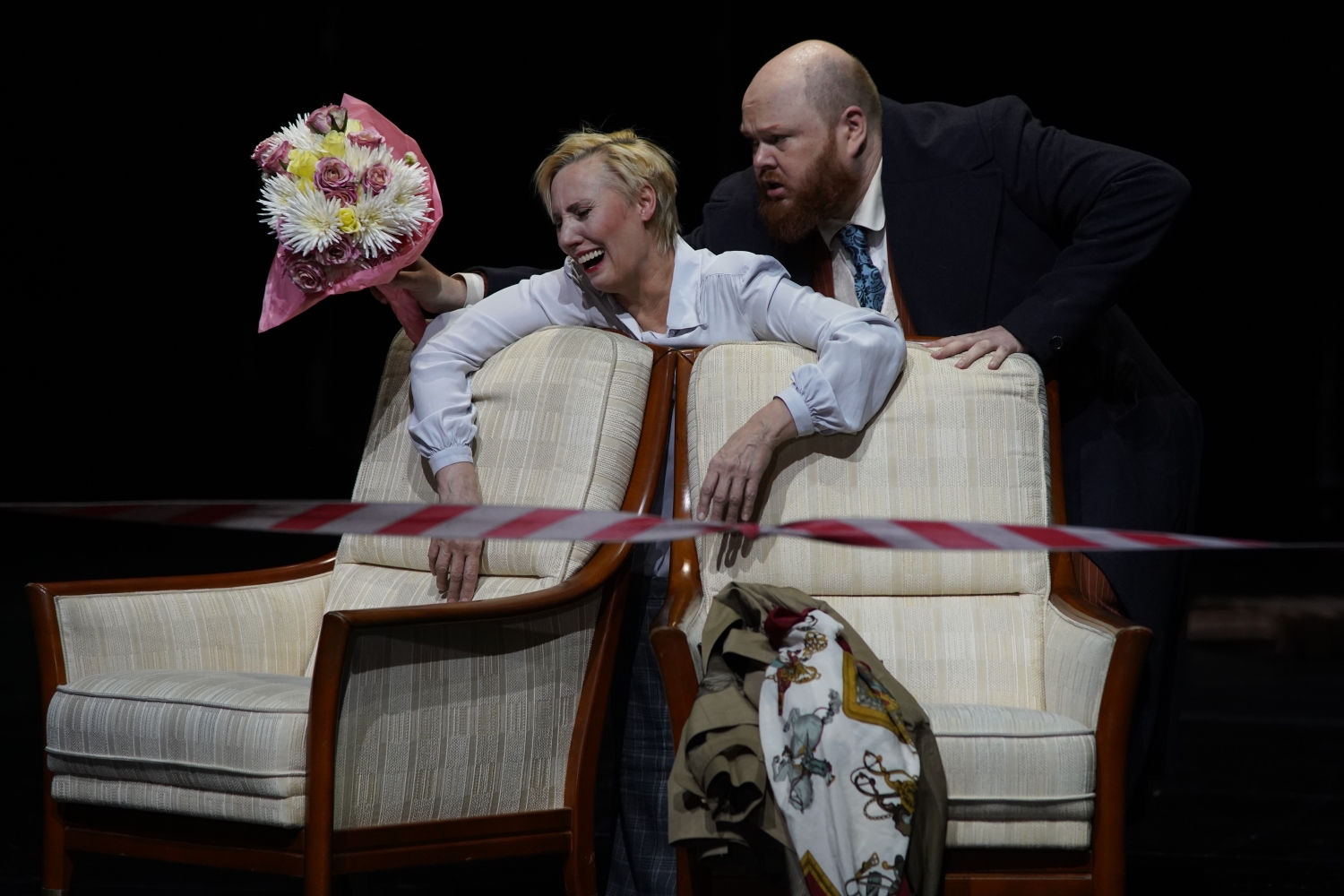 Auch die umfangreichere Herren-Riege vermag durchweg zu überzeugen. Martin Homrich als Albert und Khanyiso Gwenxane als tragisch endender Janek sind die jungen romantischen Tenor-Schwärmer, die der Diva bedingungslos zu Füßen liegen. Joachim Maaß als Anwalt, Urban Malmberg als Jaroslav und nicht zuletzt der über 80-jährige Tenor Mario Brell, der knapp 25 Jahre lang zu den Publikumslieblingen der Gelsenkirchener Oper zählten, sind unterdessen die alten Herren, die sich zum Teil nicht minder zum Affen machen. Vor allem Brell gelingt es, in seiner Rolle als verrückter Alter mit einer gehörigen Portion Selbstironie die komödiantische Seite des Stücks herauszustellen.