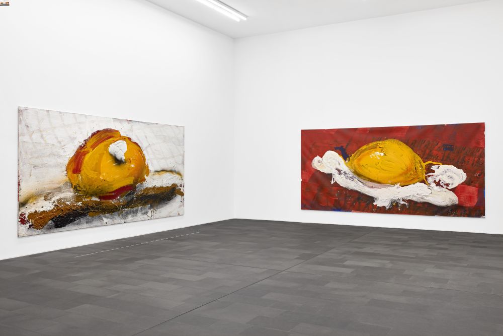 Was für Bilder! Die Formate und die Motive sind riesengroß. Die Malerei ist expressiv und wirkt ungezügelt. Die Farbe ist als plastische Masse aufgetragen, über die Leinwand gewischt oder wirkt auf sie geklatscht. Organische Formen jonglieren zwischen Abstraktion und Gegenständlichkeit. Mit Abstand betrachtet wirken sie hyperrealistisch und zeigen in leichter Draufsicht vereinzelte banale Motive, manchmal auch Worte, die mit staksigen Buchstaben über das ganze Bildfeld geschrieben sind. Kurzum, die Gemälde von Dieter Krieg, die derzeit in der Küppersmühle in Duisburg zu sehen sind, sind sperrig und irritierend. Und doch oder gerade: Dieter Krieg (1937-2005) hat die Malerei geliebt und an sie als Medium der Weltsicht geglaubt. Er lässt ihre Eigendynamik zu und versteht sie als Forschung, die Kalkulation und Spontaneität verbindet und noch sein Zögern und Handeln zum Ausdruck bringt. Dazu hat er ein enormes Repertoire an Techniken entwickelt und mit den Bildträgern, den Farbsubstanzen und ihrem Auftrag experimentiert. In all dem war er unangepasst – das betrifft sein gesamtes Werk.