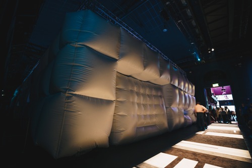 Von Ost nach West zieht sich nun eine Linie, an der auch die nach Bochum geladenen Gäst*innen und Expert*innen skizzieren können, was Immersion sein kann und auf jeden Fall nicht ist. Zwischen zahlreichen Definitionsversuchen und theoretischen Abgrenzungen fand auch die Kunst ihren Platz – selbst wenn es ganz eng wurde. So konnte beispielsweise Oberenders einführender Vortrag nicht wie geplant in der Zeche Eins, im selben Raum wie die immersive Installation „Sensefactory“, stattfinden. Als man begann, das Material für den Ort derart aufzublasen, wie man es sonst nur von Diskursen kennt, stellte sich schnell heraus: Das passt ja kaum da rein. Entstanden ist dennoch ein synergetisches Gefüge aus Geruchskapseln, erscheinenden und verschwindenden Räumen und Wegen, unterlegt von abstrakten Klangfolgen. In schummrig beleuchteter Hüpfburgen-Ästhetik versprach die „Sensefactory“ auf die Bewegungen, Interaktionen und Berührungen der Besucher*innen zu reagieren und in ihre eigene Erscheinung zu integrieren – also im Prinzip: wie eine Hüpfburg.