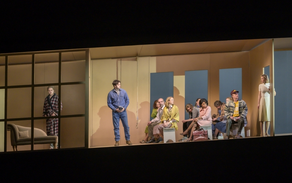 An den Film sollte seine Oper nicht erinnern, betont Komponist Gordon Kampe. Er hat gemeinsam mit Regisseur David Hermann und Dramaturg Christian Schröder das Libretto aus dem Filmskript erstellt. Drei Stunden Kino verdichtet auf 95 Minuten: Das bedeutet extreme Konzentration und fordert von der Musik Charakterisierungskunst ohne Umschweife. Beides ist gelungen: Kampe lässt das große Orchester mit Schlagwerk und einer kurzen elektronischen Einblendung flirrend eine ausdifferenzierte Atmosphäre schaffen, die prägnant die Psyche der vierzehn Figuren charakterisiert. Diese bilden zu Beginn zu einem lauernden, sich steigernden Sound ein Ensemble; ein Mann mit Bierkiste wiederholt wie einen cantus firmus: einsam, einsam …