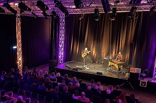 Herne ist nun eins von nur zwei Konzerten ihrer Tournee, in denen sie statt mit ihrer Band im Duo zusammen mit Mascha Juno (Maria Schneider) auftritt. In diesem Format kommen die Texte wunderbar zur Geltung: Das Vibraphon, wie Juno es spielt, ist ja selber Poesie, umspielt die Lieder und lässt sie fliegen, ihr Percussion-Spiel ist unaufdringlich zärtlich. Dota brilliert mit der kongenialen gesanglichen Interpretation der mal verschmitzten, mal wehmütigen Poesie der Vorlagen. Zudem ist der Sound in Herne so vortrefflich, dass in den Zugaben der Tontechnik ein eigenes Lied gewidmet wird.