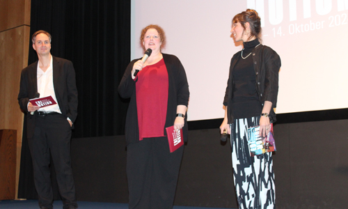 Freitag, 11. Oktober: Seit nunmehr 24 Jahren ist die Verleihung der Schnitt-Preise aus dem Festivalkalender in Nordrhein-Westfalen nicht mehr wegzudenken. Unter dem Namen „Edimotion – 24. Festival für Filmschnitt und Montagekunst“ haben sich auch 2024 an den vier Festivaltagen in Köln EditorInnen aus dutzenden Ländern zum kreativen Austausch zusammengefunden. Neben dem Themenschwerpunkt „Der historische Schnitt“, dem Länderfokus Australien, dem International Film Editors Forum (IFEF) und weiteren Werkstattgesprächen stehen auch in diesem Jahr wieder die jeweils fünf nominierten Filme in den Kategorien Spielfilm, Dokumentarfilm und Förderung Schnitt im Mittelpunkt, die mit anschließenden Filmgesprächen alle auf der großen Leinwand zur Aufführung gelangen. Tradition hat darüber hinaus auch die Verleihung des Ehrenpreises Schnitt, der in diesem Jahr an die Editorin, Autorin und Regisseurin Gabriele Voss geht, die insbesondere durch ihre Dokumentarfilm-Kollaborationen mit Christoph Hübner bekannt ist. Auf der Bühne am Eröffnungsabend präsentierte die langjährige künstlerische Leiterin von Edimotion, Kyra Scheurer, gemeinsam mit ihrem für die Sektion Spielfilm und das internationale Programm verantwortlichen Kollegen Dietmar Kraus mit Tama Tobias-Macht eine neue Mitarbeiterin, die 2024 bei Edimotion erstmals die organisatorische Leitung übernommen hat. Scheurer betonte, dass Edimotion in Nordrhein-Westfalen nach wie vor das erste und bislang einzige klimaneutrale Filmfestival sei. Dank einer Kooperation mit doxs! und durch eine Förderung durch die Imhoff-Stiftung sei in diesem Jahr auch ein Herzenswunsch in Erfüllung gegangen, so Scheurer weiter. Man habe dadurch erstmals eine weitere Festivaljury zusammengestellt, bestehend aus Jugendlichen zwischen 15 und 19 Jahren, die aus den Wettbewerbsbeiträgen der Spiel- und Dokumentarfilme ebenfalls ihre Sieger wählen und auszeichnen.